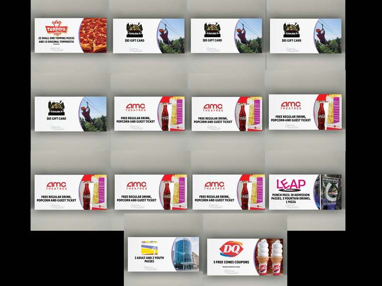 Lot Description: Discover the best of Manhattan with this action-packed package, perfect for families, friends, or anyone looking for a local adventure! Enjoy five free cones from Dairy Queen – West and indulge in a feast of 25 small one-topping pizzas and 13 orders of original Topperstix from Toppers. Keep the fun going with two adult and two youth passes to the Discovery Center, then take your thrill-seeking to new heights with four exhilarating zipline passes from Wildwood Adventure Park. Movie night is covered with six fountain drinks, six popcorns, and six guest re-admit passes from AMC Dine-In Manhattan 13, and for even more excitement, a Leap punch pass offers 10 admission passes, three fountain drinks, and a pizza. With food, fun, and adventure rolled into one, this incredible package ensures unforgettable memories right here in the Little Apple!