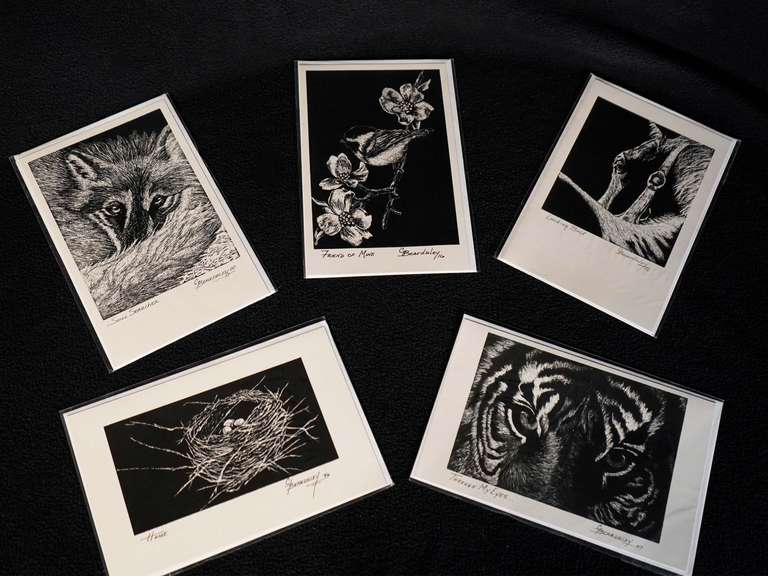 Lot Description: From Chris Beardsley, enjoy a set of five elegant black-and-white bi-fold cards. Perfect for sharing a heartfelt message or keeping as artistic keepsakes.