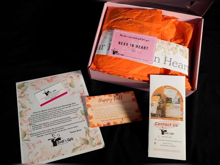 Lot Description: Brighten your day with a thoughtful “Feel Good Box” from Britt’s Fountain and Gifts in Concordia. Each box is carefully curated to wrap you in comfort and joy. Inside, you’ll discover a cozy fall lap blanket, a mini pumpkin, chicken soup, conversation starter cards, a soothing tea bag, a seasonal décor piece, a special surprise gift, and a few sweet treats — all chosen to lift your spirits. Best of all, not only will you get to enjoy one yourself, but you’ll also have the chance to send a box of comfort to someone you care about.