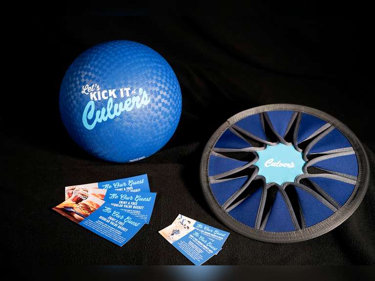 Lot Description: Bring home smiles with this family-friendly package from Culver’s. Includes gift cards, a kickball, frisbee, and a bag full of treats. The perfect combo of food, fun, and play.