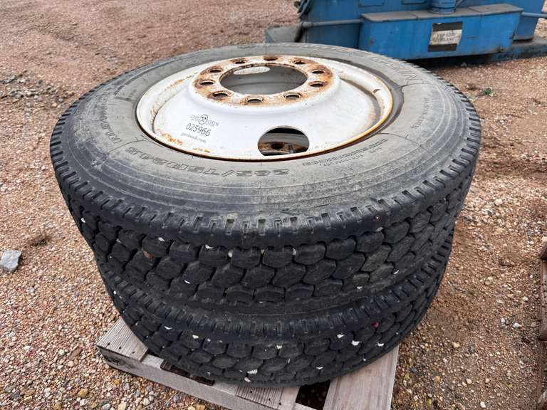 - This lot contains (2) 285/75R24.5 Tires on Rims.