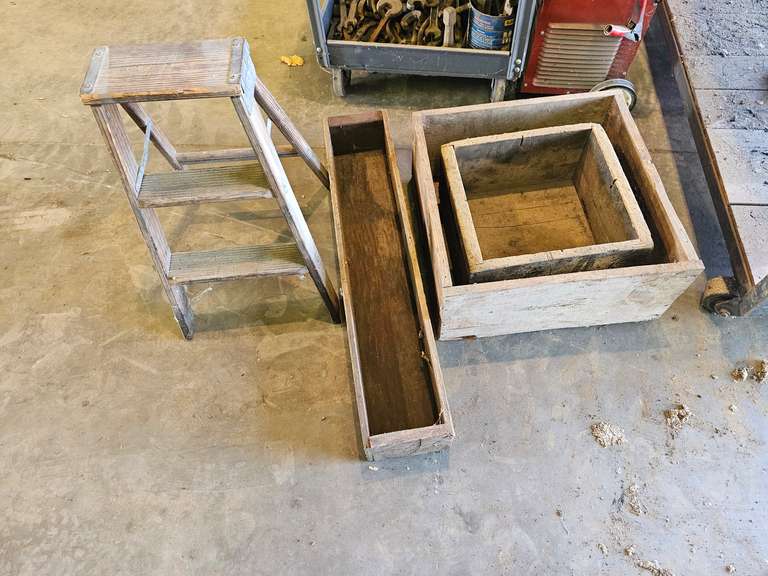 - This lot contains Wooden Boxes & Wooden Ladder as pictured.
