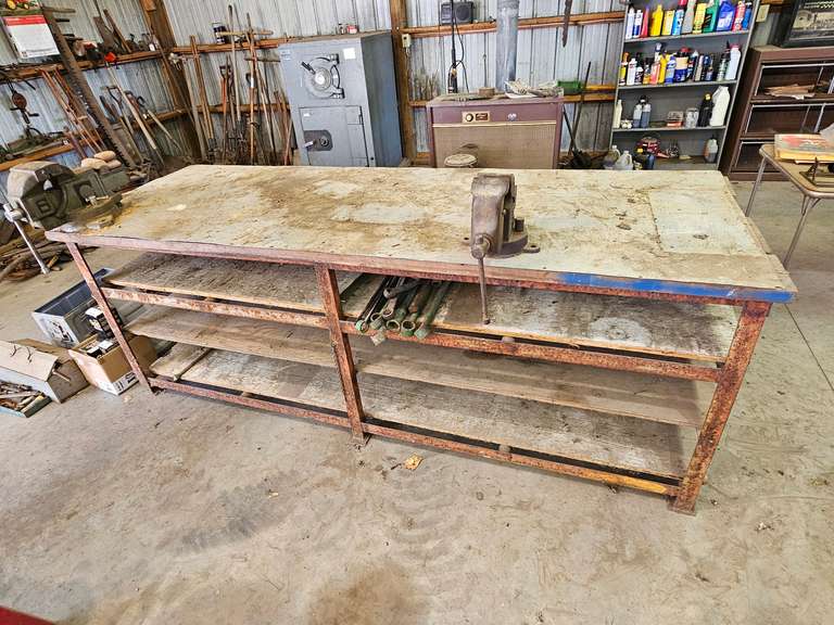 - This lot contains an 8' Metal Work Bench w/(2) Vices as pictured.