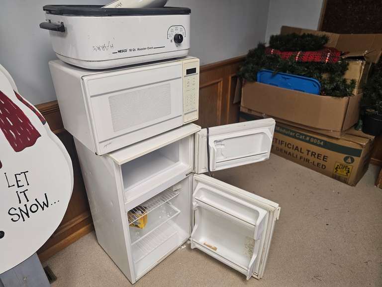 - This lot contains a Dorm Fridge, Microwave & Toaster Oven in used condition as pictured.